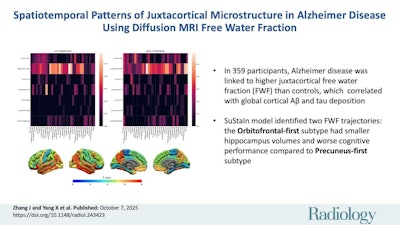 Juxtacortical free water fraction found on MRI was higher in people with Alzheimer's disease compared to cognitively normal controls...